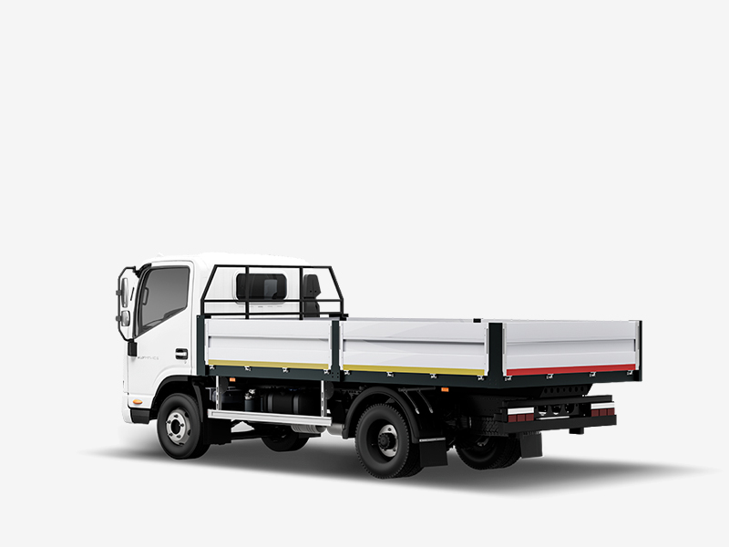 Платформа имеет борта высотой 40 см. Они выполнены из анодированного алюминия. Для удобства погрузо-разгрузочных работ их можно откинуть на 180 градусов. В грузовом отсеке помещается до восьми европалет. Грузы можно закрепить с помощью шести такелажных колец, полностью утопленных в окантовочный профиль бортовой платформы. Для водителя есть ступень, чтобы было удобно подниматься. На полу постелена влагостойкая противоскользящая фанера 18 мм.