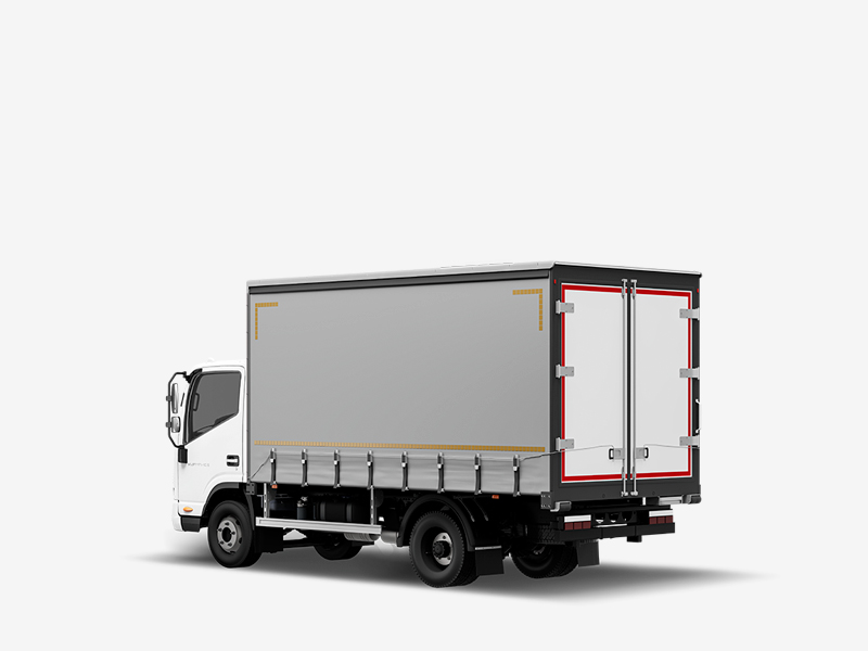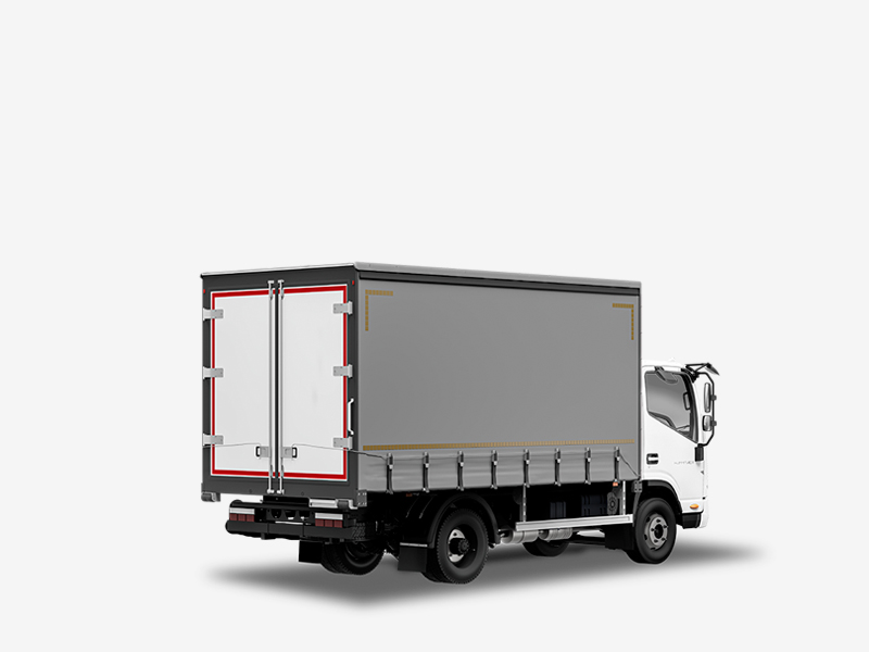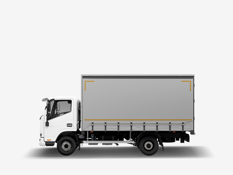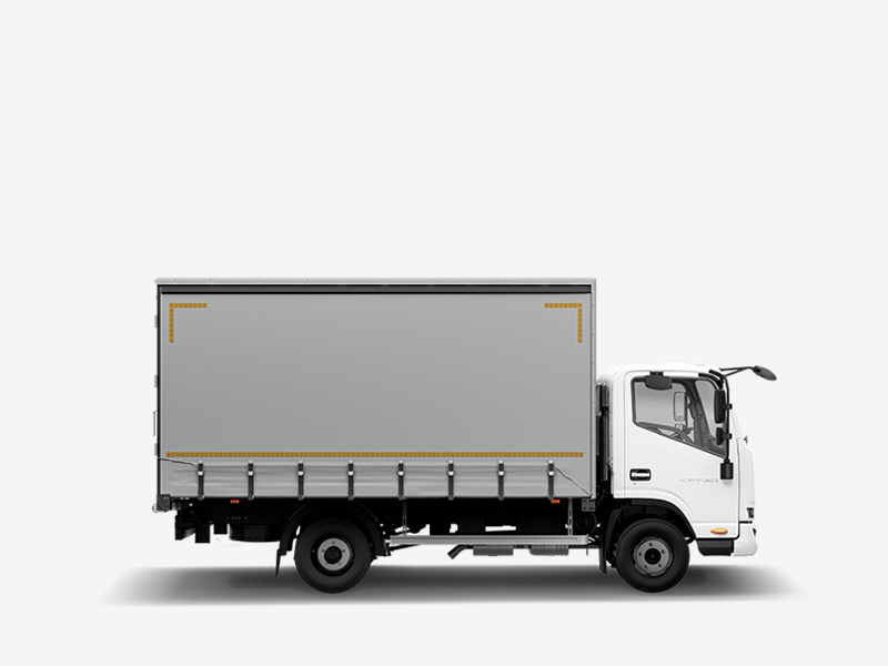 Грузовой отсек имеет высоту 2,5 м. Но благодаря сдвижному тенту на крыше и съёмной поперечине, на платформу можно погрузить и более высокие товары.